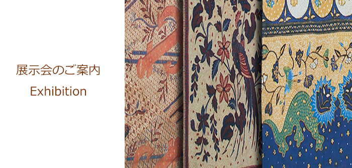 ジャワ更紗の生地。洋服 ジャワ更紗の着尺地 茶道の小物など展示します